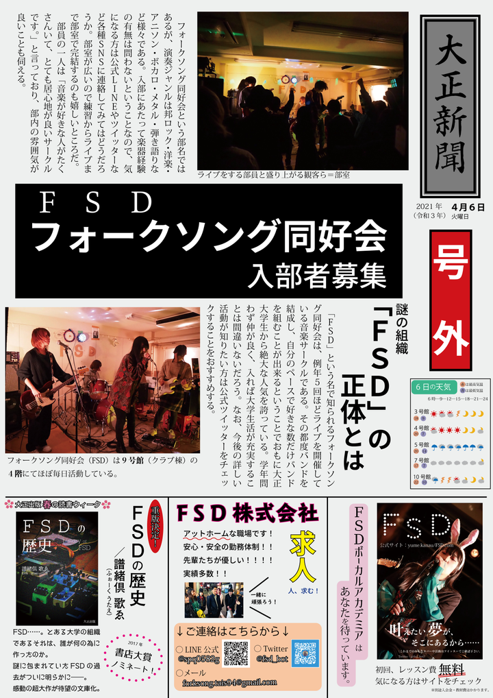 私は高校入学の少し前から現在に至るまで、ベースを続けています! それ以前から吹奏楽部でユーフォニウムを担当していたり、小学生の頃にギターを少し弾いていたので、音楽の知識にはかなり自信があります。 音楽はジャンル問わず知識があるので、音楽の話で場を和ませたり、そこから交友関係を築いていくことも得意です! また、楽器は断念する人が多い趣味ですが、5年間も同じ楽器を続けており、”続けること”は得意と言えると思います。 バンドは「方向性の違い」なんかで解散になるケースが多いですが、私はそんな脆い”バンド”という関係性においても、メンバーを一つにまとめてきた経験が多くありますので、グループでの活動にも自信を持っております! 大学では軽音楽系のサークルにも所属し、サークル内では書記として新入生歓迎のポスター等の制作にも携わっており、音楽というただの趣味から、自らのデザイン等のスキルアップにまで繋がっています! 実際に作成したポスターも添付させていただきます。ぜひご覧ください!