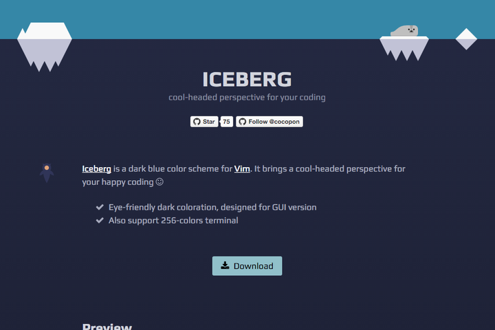 テキストエディター「Vim」向けに制作した、暗青系のカラースキーム。南極の氷山や海をイメージしながら、彩度や色数を落として目に優しい配色を目指した。警告色の使い方や多様な色覚にも配慮した、色彩学に基づく数少ないカラースキームのひとつとなっている。 本人やその他の有志の手によって、macOSのターミナルやiTerm2、Atomなど、他の環境にも移植されている。