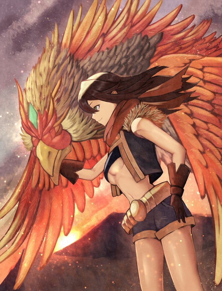 鶏を参考に考えた幻獣と、彼と仲良しな少女を描きました。