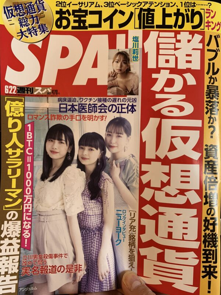 週刊SPA!(2021年6月号)仮想通貨特集にて取材記事執筆。 DeFiについて業界のインフルエンサーに取材し、仮想通貨投資で億の資産を築いた一般投資家に取材しました。