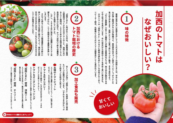加西市の特産物推進パンフレット「加西のトマト」を制作。 インタビュー取材・執筆・写真撮影・編集・ディレクション等を担当。