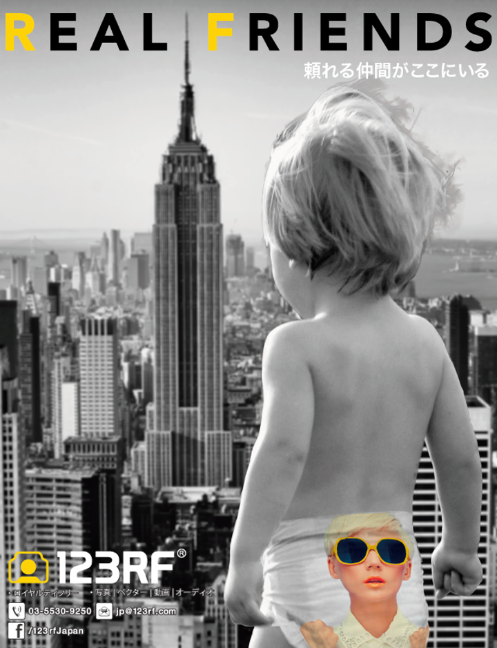 123RFさんのイメージポスターです。 素材数の多さに頼もしさを感じた点と、競合のGettyさん、Pixtaさんなどとは違う黄色がイメージカラーである点を伝えたいと思い、制作しました。 Adobe Photoshop, Adobe Illustrator