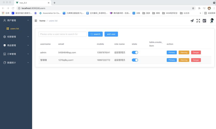 Vue3.2を勉強するために管理システムを作りました。 技術スタック:Vue.js(3.2)、Vue.cli、element.ui、webpack、driver.js 登録name: admin Password : 123456