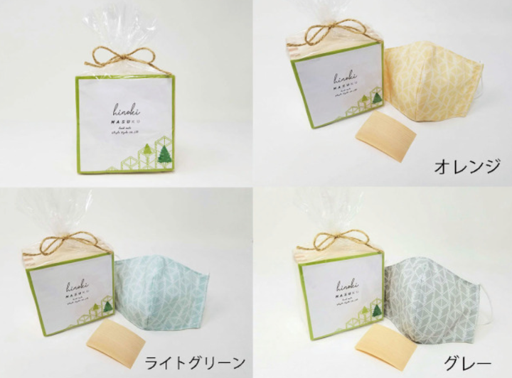 コロナ禍で枡の需要が激減した際に、枡の技術を生かしたマスクを考案しました。 枡の製造工程で出るヒノキのかんなくずをシート状にし、マスクの内側のポケットに入れることでヒノキの香りを楽しめるマスクを作りました。