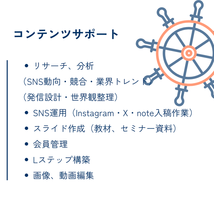 バックオフィス業務から、SNS・文章・資料作成まで、状況に合わせて一括で対応しています。