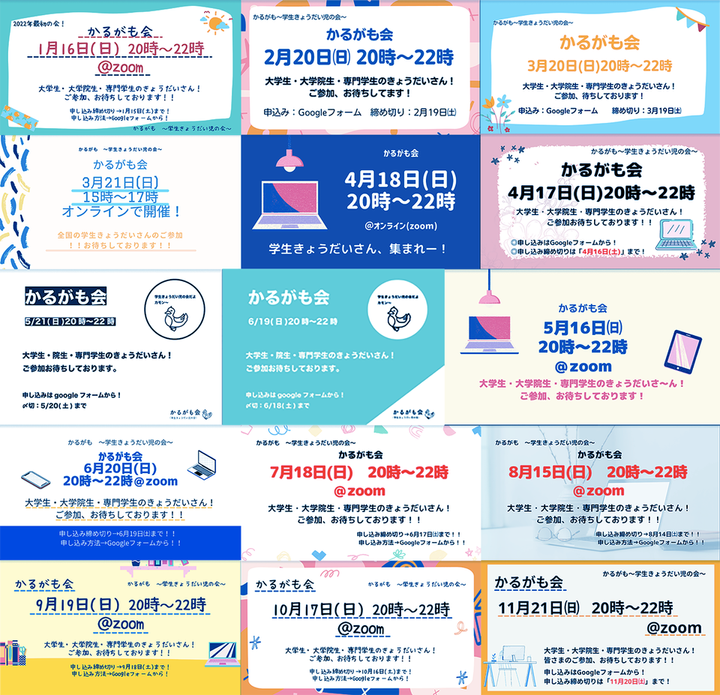 かるがも ~学生きょうだい児の会~は、 2019年に立ち上げられた、大学生、大学院生、専門学生のためのきょうだい会。 月一で開かれる会の主に広報とファシリテーター、会の運営に携わる。