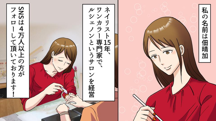 ネイルサロン「ルシェノン」様の広告漫画です。 Twitterを通しての紹介で、シナリオから全て対応しました。(動画編集は外注)