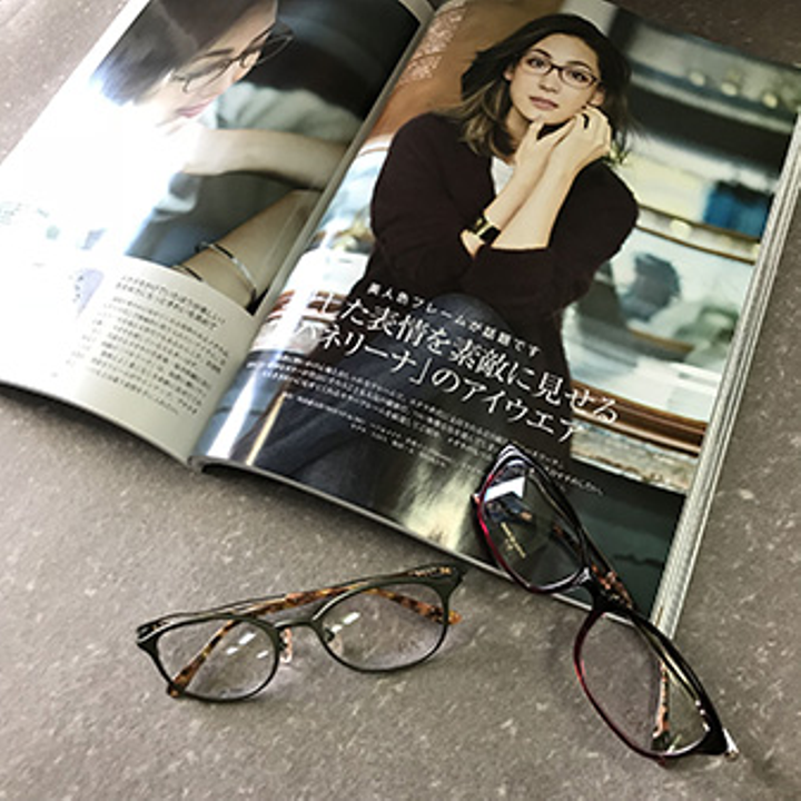 おばちゃんの眼鏡にも「機能性+オシャレ」な眼鏡があってもいいじゃないかということで、新規開発した眼鏡です。 雑誌「eclat」(集英社)にも掲載していただきました。