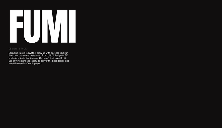 武蔵野美術大学基礎デザイン学科の2年生です。 京都で生まれ育ち、日本料理店-京都舞鶴ARIYOSHIを営む両親に生まれました。 UI/UXデザインからCinema 4Dを用いた3D制作、AIの使用など、表現手法に制限は設けていません。 各プロジェクトの目的や課題に応じて、最適なメディアを選び、最良のデザインを提供することを大切にしています。