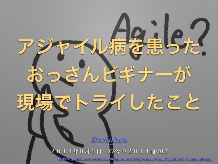 書籍「アジャイルサムライ」にインスパイアされ、自社の開発現場でアジャイル開発に取り組んだ奮戦記をXP祭り2014でLT登壇しました。