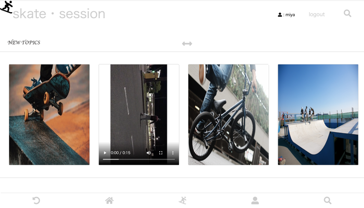 画像、動画を投稿できるプラットホームです。 スケートボードやスノーボード、サーフィンなどに焦点を当てたサイトです。 私自身、スケートボードが好きで、こういった特定の分野やカルチャーを発信できるものが作りたいという思いがあり、作成しました。 まだまだ、改善部分や追加したい機能があり、実装を進めています。 言語:Ruby(Ruby on Rails)、JavaScript ツール:GitHub、Visual Studio Code DB:PostgreSQL サーバー:HEROKU