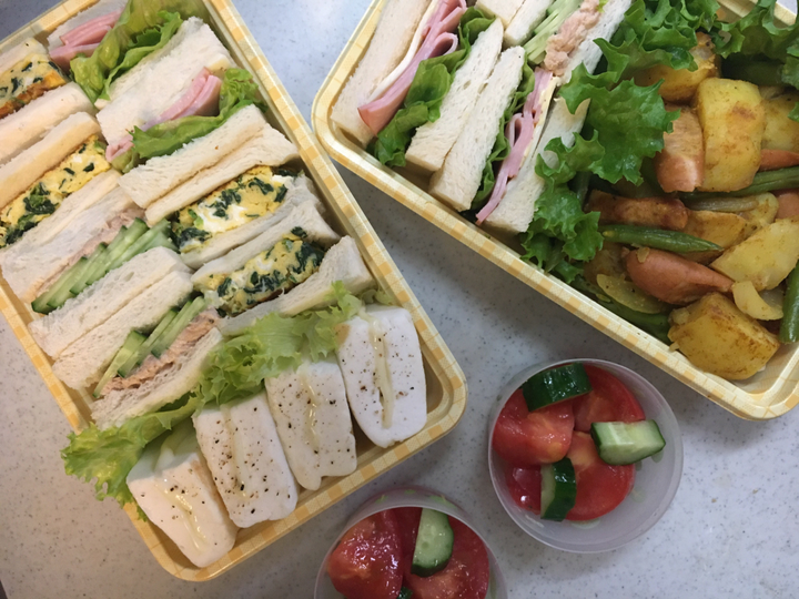 サンドイッチとジャーマンポテトでピクニック弁当です。