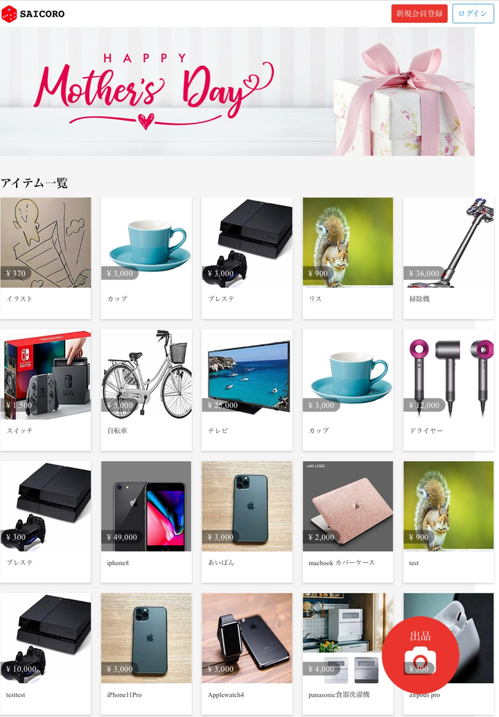 スクールの課題でチーム4人でフリマアプリのコピーを作成しました。 添付URLに説明文を記載しています。 機能の詳細、使い方、私が作成した機能など。 是非確認して頂ければと思います。