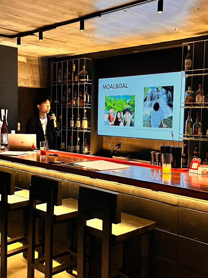 副店長兼CIOとして、私が働くBARで多様なバックグラウンドを持つ企業経営者と学生を対象に、プレゼンテーションを行いました。参加者は25名以上で、BARは満員でした。このプレゼンテーションでは、私のフィリピンでのバックパッカー体験、特に東洋一のスラム街「スモーキーマウンテン」での生活や現地の人々との深い交流について話しました。 私のプレゼンテーションは、学生と経営者の両方にとって有益な学びがあり、楽しみながら自分事化することに重点を置いていました。このために、対話的なワークショップも取り入れました。 具体的には、フィリピンの行商の実例を取り上げ、「このルールの中で行商を行うとしたら、何をする?」という刺激的な問いを投げかけました。また、スラム街の住民の生活と幸福に対する価値観に関する深い洞察を共有し、参加者に「あなたにとっての幸福とは何か?」を自問させました。 最終的には、参加者全員が本気で考え悩む良い時間になりました。取締役の方に「今度お金払うから、うちの会社でもプレゼンしてよ!」と言われるほどになり、プレゼンをすることに対してとても自身が付きました。