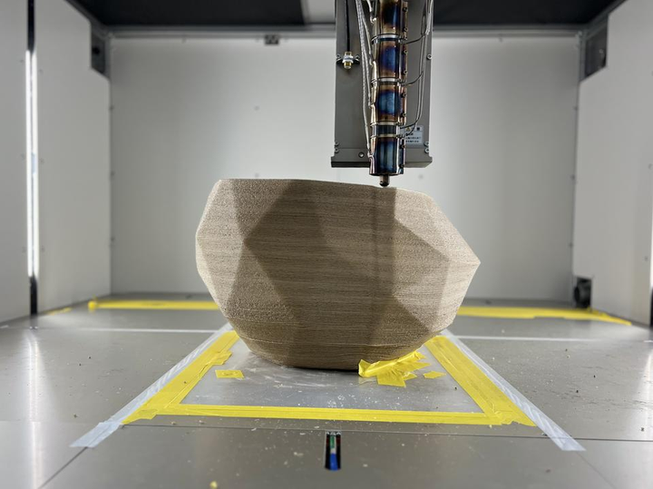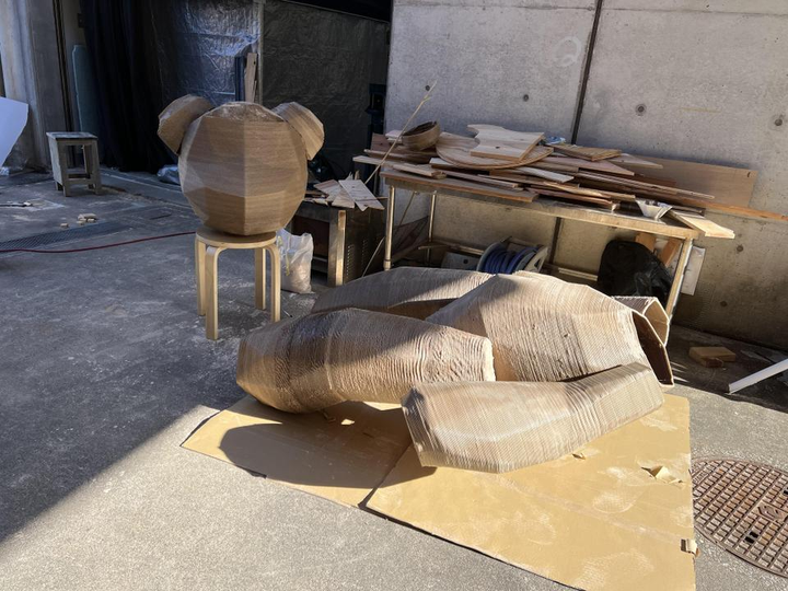 大型3Dプリンターの会社(ExtraBold)にインターンシップで参加、海洋プラスチックごみの素材開発実験を行いました。その素材を使い、植木鉢と2Mの巨大クマを作りました。