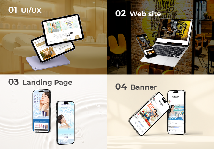 UIUX改善、サロンサイトWEBサイトリニューアル、スキンケアLP、バナー制作など