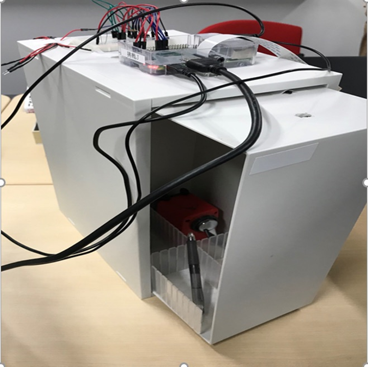 引き出しを開け閉めするたびに引き出し内部をカメラで撮影し、画像処理により内部に何があるのかリアルタイムに把握出来る仕組みになっております。なお、引き出し内部に入れるのはハサミ,ボールペン,シャーペン,鉛筆削り,消しゴムです