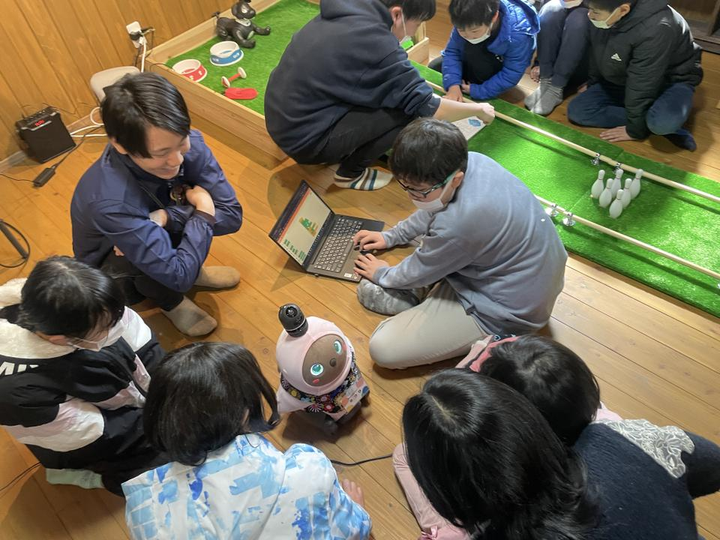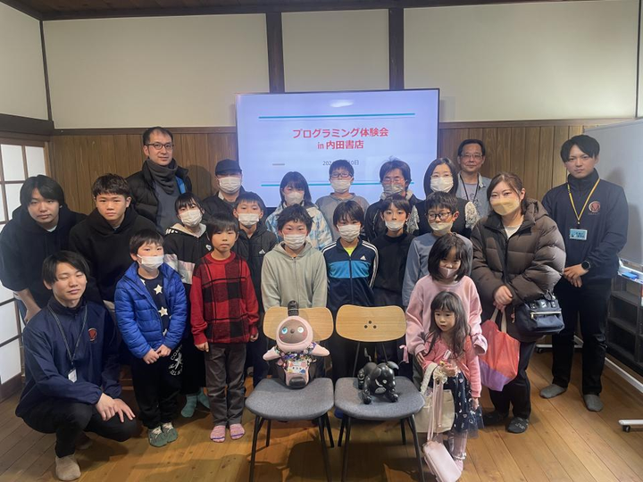 遠野市の子ども達にaibo・LOVOTを用いてプログラミングの楽しさを体験していた抱きました。