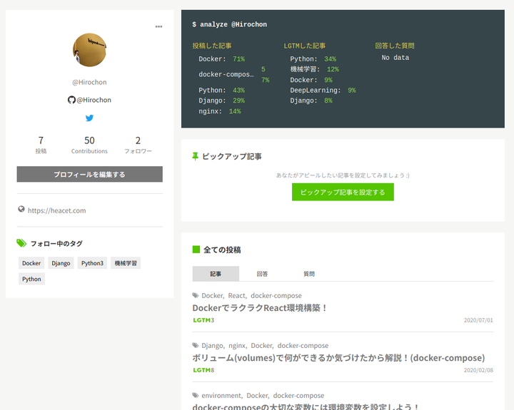以下の記事などを書きました。(※いくつか抜粋) ・機械学習(アヤメ{花びらとがく片の長さと幅が特徴量}をSVMで分類する流れを初心者に向けて解説)について ・DjangoにてAmazonSESを用いたメール配信を行う際の注意点について ・Dockerのボリュームを扱う際の正しい使い方について