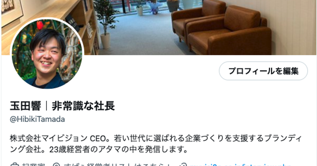 株式会社マイビジョン CEO|ビジョンに向かう組織づくりを支援する会社を経営|ビジョンづくりから浸透、SNS運用やデザイン、採用戦略設計と実行まで一気通貫して対応|2000年生まれの24歳|ずっと愛媛県にいるけどたまに東京|最近は韓ドラにハマってます!!