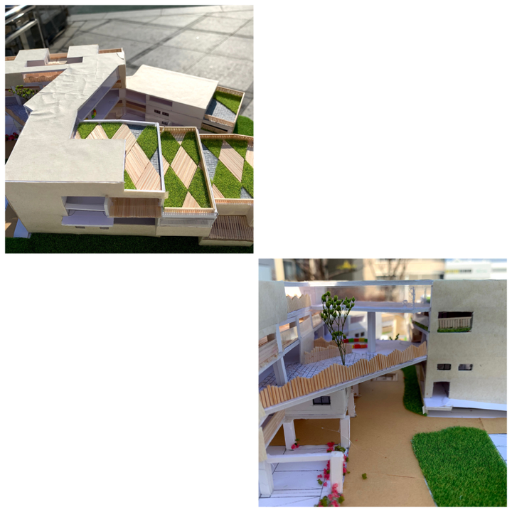 世代間交流を目的とし、住人が自由に使える交流スペースを多く作った。 壁を取り払った場所を作ることで、一つの建物で外の空間と中の空間を感じることができるように設計した。