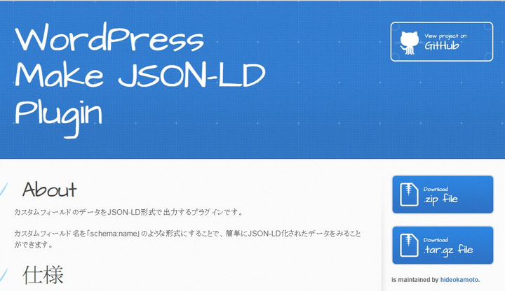 WordPressのカスタムフィールドを利用してJSON-LD形式のオープンデータを作成するプラグイン。【「2015(第12回)守山ほたるパーク&ウォーク」に関するオープンデータ】に採用されている。→http://opendata.shiga.jp/moriyamahotaru/