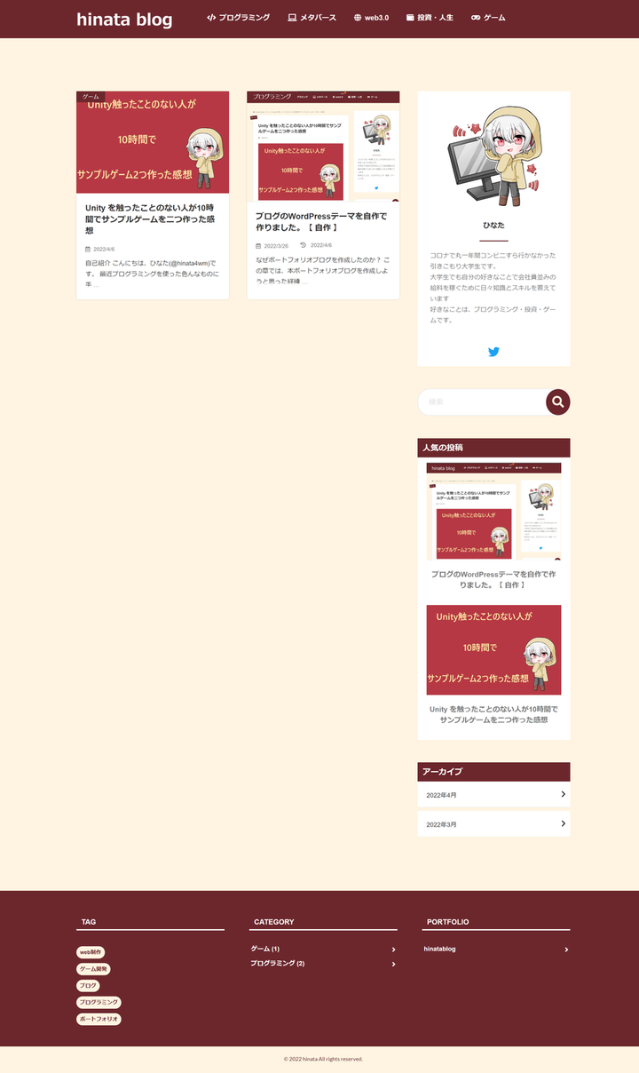 自作個人ブログ