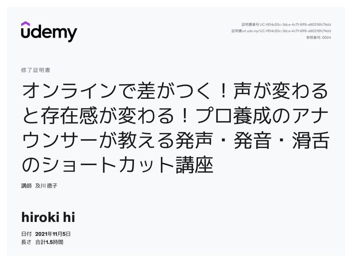 udemyで提供されている話し方の講座を一つ受けました。 自分の言葉をより良く伝えるには発生の方法を変えることで 伝わりやすくなりました。