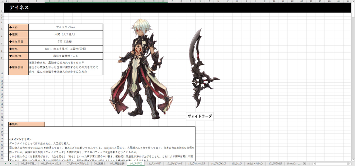 キャラクターの企画書例 ※各キャラクターを一定フォーマットでまとめている
