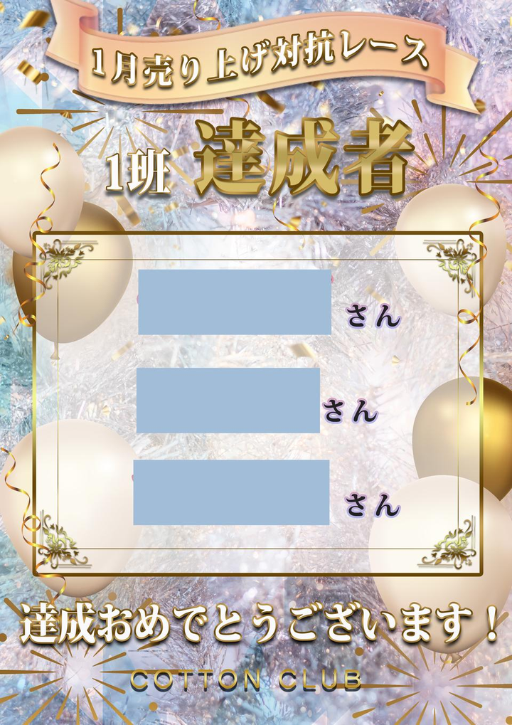 ナイトクラブキャスト様向けポスターです。売り上げ目標を達成した方を発表するポスターです。デザイン完全お任せ。毎月同じデザインで色を変えたり等して、年間通して使用します。キャスト様にとっては少しシビアな内容のポスターなので、少しでも明るい気持ちになるように、また頑張っている人には嬉しい気持ちになるように賑やかに作成しました。
