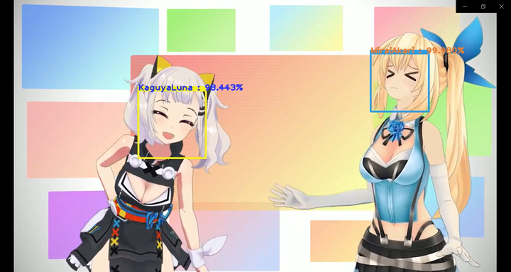 初期バーチャルユーチューバー24人の顔を検出し、 判別する機械学習モデルを制作しました。 制作にはPython3, TensorFlowを使用しています。 画像用、動画用、Twitter用と応用を制作しましたが、 動画をYouTubeにアップロードするのは著作権の都合上よろしくないかと思い 画像に適用したものをアップロードします。