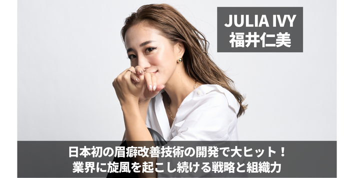 株式会社JULIA IVY代表取締役社長。「ブロウリフト®」という言葉と概念を世界に創出し、眉の生え癖を改善できる国内初のアイブロウソリューション®技術『HOLLYWOOD BROW LIFT®』ハリウッドブロウリフトを開発。学生時代から20代はタレントとしてTBS『王様のブランチ』のリポーターを8年半務め、ビジネス番組のナビゲーターも。美容業界の先人たちが作ってきてくれた道筋を大切にしながらも、”眉毛をプロにケアしてもらう文化を日本