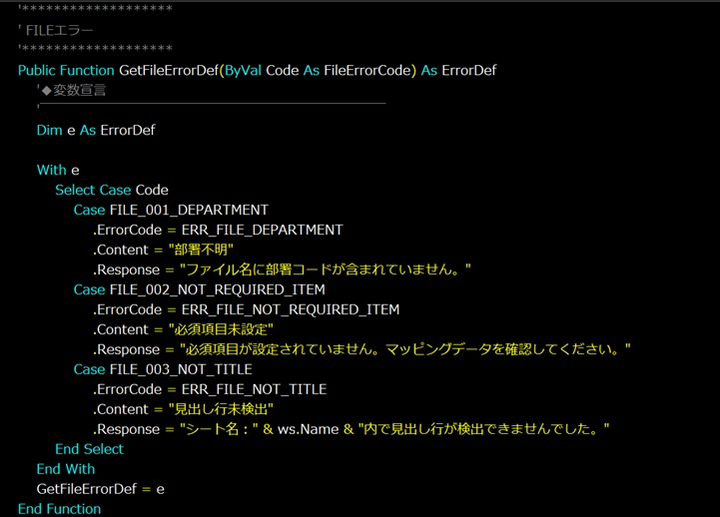 エラー定義を集約している部分