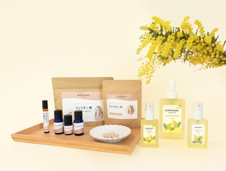 生理に寄り添うセルフケアブランド「withmoon」 2014年から運営している前身ブランド「月のおまもり」をリブランディングして、 withmoonとして展開。 女性特有のお悩みに対して毎日を心地よく過ごせるよう「おまもり」のような存在になれる ブランドとしてハーブティーやサプリメント、デリケートゾーンケアアイテムなどをラインナップしています。