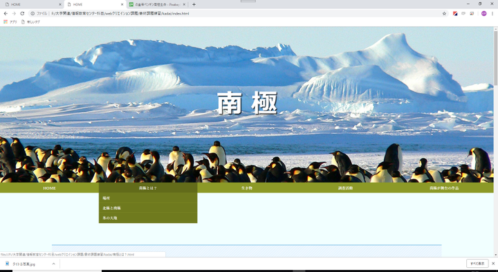 学校の課題で作成した南極を紹介するホームページ