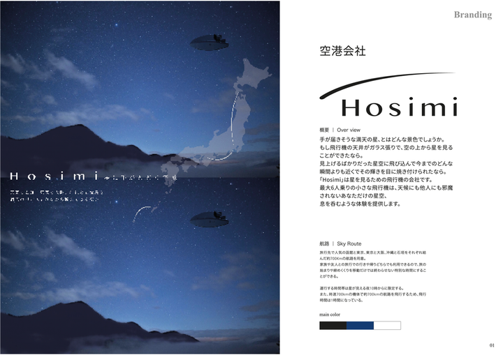 「HOSIMI」という航空会社を作り、ブランディングデザインを進めました。
