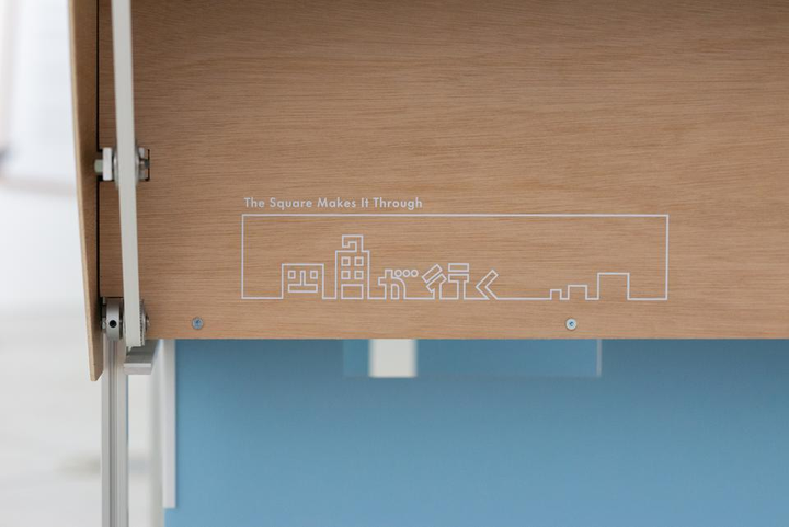 21_21 DESIGN SIGHT の企画展「ルール?展」で発表した作品。nomena、中路景暁さんとの共作。 「四角が行く」は、抽象的な世界の中で、ある規則(ルール)を律儀に守るものたちの「ふるまい」を鑑賞する映像作品です。主人公は3つの大きさが異なる白い箱(四角たち)。その前に穴のあいた関門(ゲート)がベルトコンベアーに乗って現れます。四角たちはそれぞれ移動し、向きを変え、パタパタと転がり、ゲートに空いた穴の形とぴったりになるようにフォーメーションを組みかえ、ゲートをくぐりぬけていきます。ずっと見ていると、四角たちが迫り来る困難に協力して立ち向かっているようにも見えてきます。 Photo:Takako Iimoto