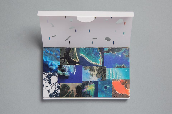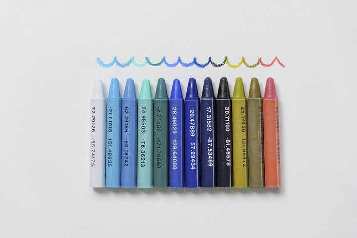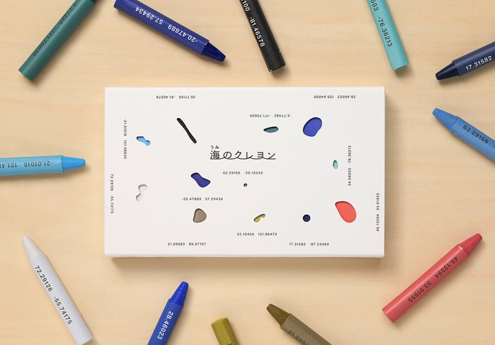 世界中の海の衛星写真の中から12枚を選び、その色から12本のクレヨンをつくった「海のクレヨン」。cogでデザインを担当しました(石川将也+言乃田埃)。
