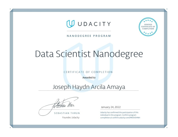 Data Scientist Nanodegree Certificate