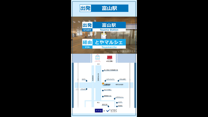 デジタルサイネージを使用した道案内動画の撮影・編集全般に携わる。 富山ターミナルビルとブイテック研究所による実証実験動画としてとやマルシェ・のれん横丁の道案内動画を製作いたしました。