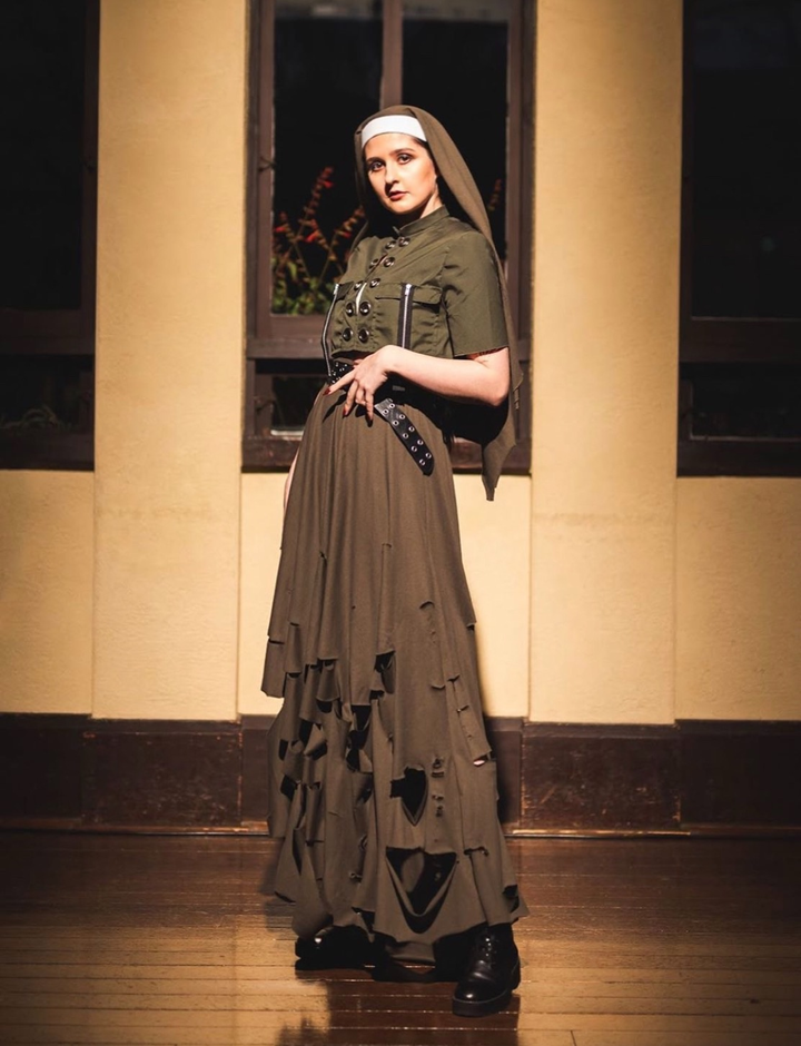 この作品を通して私は多くの人に「女は守られる存在、弱い存在である。」といった認識を考え直してもらい、女の強さというものを伝えたかった。 この作品を作るにあたって得た着想が2点ある。一点目はシスター・オブ・ザ・バレーという女性により創設され、女性により運営される“フェミニスト”の団体から得た。彼女達は医療用マリファナを栽培している「修道女」である。彼女達が栽培するマリファナを盗みに来る泥棒も沢山いるが、武装した彼女達は全て自力で泥棒たちを追い払う。私は、そのような彼女たちの強さに惹かれたと共にこのように強く生きる女性がいることを社会へ伝えたかった。 2点目は、このような強い修道女たちがいる一方で虐げられている修道女がいる事実からも目を背けてはいけないという点だ。ローマ法王フランシスコ1世が、司祭による修道女への性的暴行があったと公に認め謝罪したといった件があったように、聖職者の間では性的暴行が多く発生しているという現実がある。実際、司祭のほとんどは男性であり、聖職者はやはり男性の方が有利な立場にある。男性優位でかつ普遍的な世界で生きていない修道女達が声高にそのような性的暴行を受けたと言うのはとても難しいという現実があることを1人でも多くの人に伝えたいという思いが強くあり、この作品を通して社会に提示したかった。