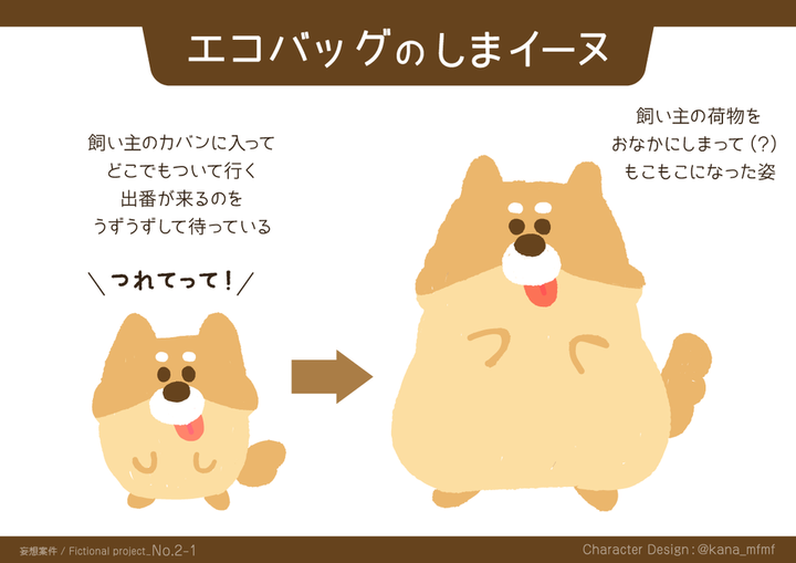 架空の案件を設定した自主制作 「たたむと動物デザインのポーチになるエコバッグ」のイメージキャラクター X(旧Twitter)で更新中です