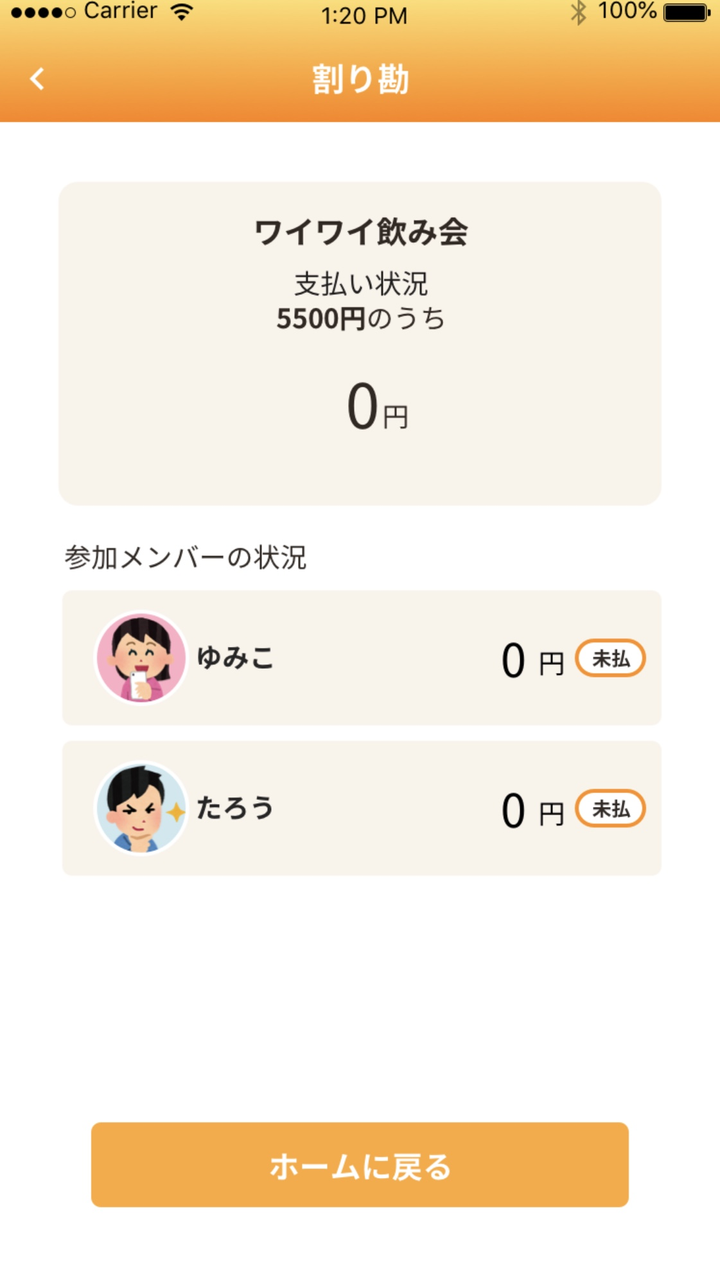 割り勘アプリの設定で作成したUIデザインの一部です。Sketchで作成、プロトタイプはInvisionで作成しました。