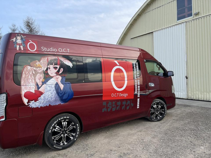北海道旭川市にある塗装店スタジオオクト様より、オリジナルキャラクター「ONI子ちゃん」の制作依頼を受け、これまでに2パターン納品。いずれも社用車に貼り付けていただき、旭川市内および近郊でご活用いただいております。