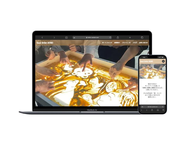 サンドアーティストKohei様のホームページをリニューアルいたしました。 依頼はランサーズにて承りました。 YoutubeやInstagramの埋め込みを表示させつつ、表示スピードが速いWebサイトを構築しました。
