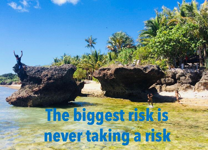 フィリピンの小さな美しく島シキホール島で親子留学中、以外に高い岩山から平気で飛び込み子供達から学んだ事。ワクワクする事があればリスクを恐れて挑戦しないのはその先の楽しみさえ知るよしがない、一番のリスクだ。 (ちまみに私は岩山から飛ぶ事にワクワクを感じなかったので飛んでません;;)
