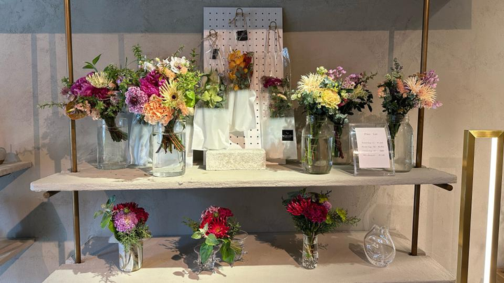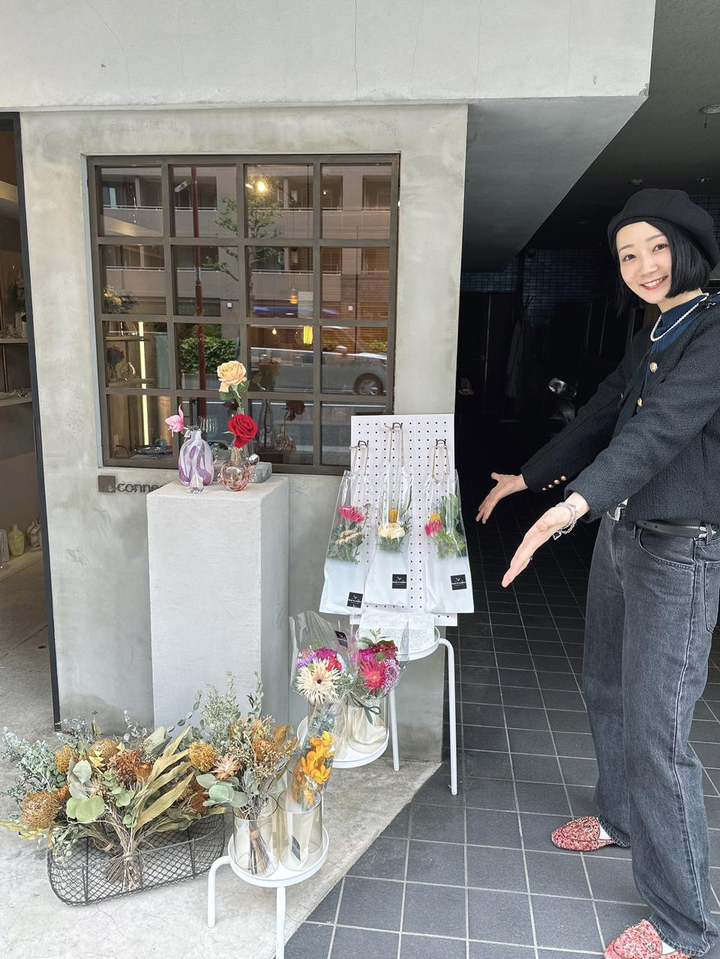 hanatomidoriは父と母が3年前に開業したお花屋さんです。両親に教わって花屋の知識やスキルを付けています。4月に両親の協力やコラボしたいと熱望したガラス花器を作るアーティストさんとコラボしてポップアップを開催しました。