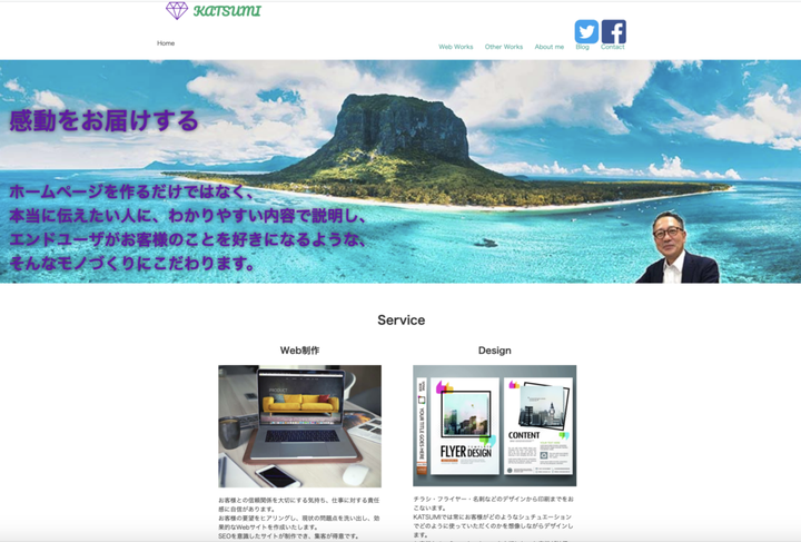 自身のフリーランスKATSUMIのホームページです。企画・設計・構成、デザインから全て自分でWordPress化まで完成させました。