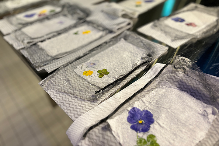 オフィスの古紙を再生し、オフィス周辺の花壇の廃棄花を利用して花和紙を作るワークショップを開催し、地球資源の枯渇状況を学び3R意識を身に着ける