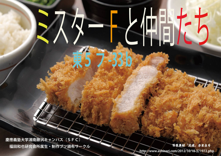 C89サークル参加時のポスター トンカツはサークル名ともなっいる研究会主催者兼師匠の「ミスターF氏」の大好物 ツール:Photoshop